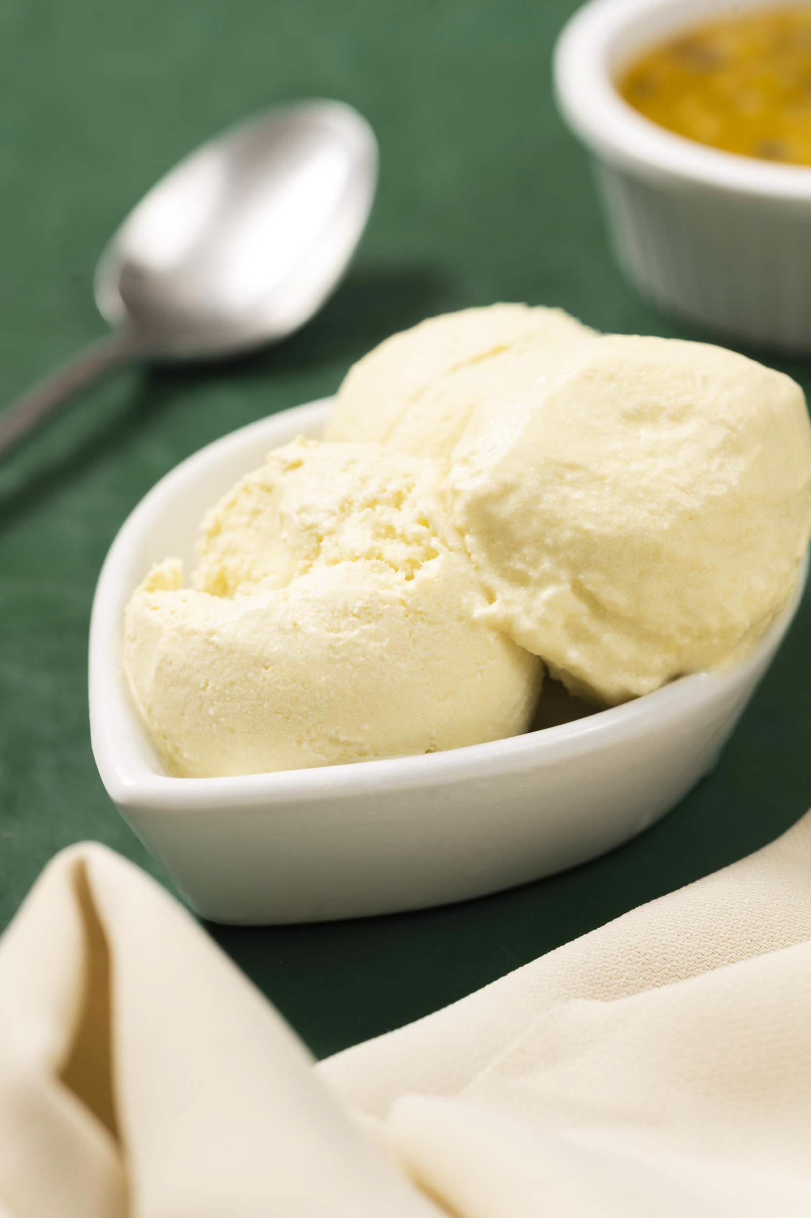 Helado sin azúcar y sin lactosa de Maracuyá de consistencia cremosa.